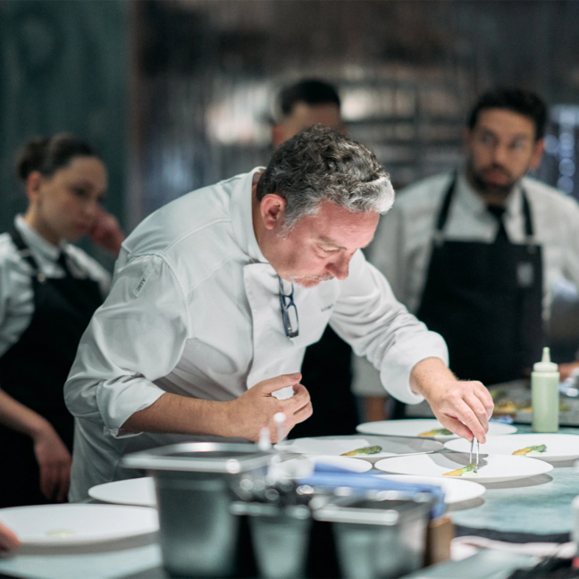 Adrià, who was the creative lead of the now-closed Spanish restaurant El Bulli, broadly considered the most influential in dining history, made cold and hot preparations with gelling agents; things with meat juices; dishes with ‘air’; compacts and frozen powders. He upended his menu – the structure of which consisted of 50 or so dishes – every year. He and his brother, Ferran, who co-ran the space, are attributed as the first modern chefs to question the entire operation of the kitchen and the skills taught within it.
