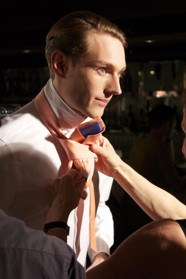 The show was styled by GQ’s Creative Fashion Director Jo Levin, who matched bright and neutral colour tones perfectly. Hair was done by no less then Tyler Johnson, who said he opted for a groomed Mad Men look meets rock ‘n roll.