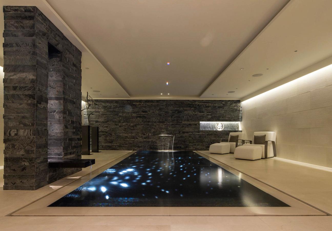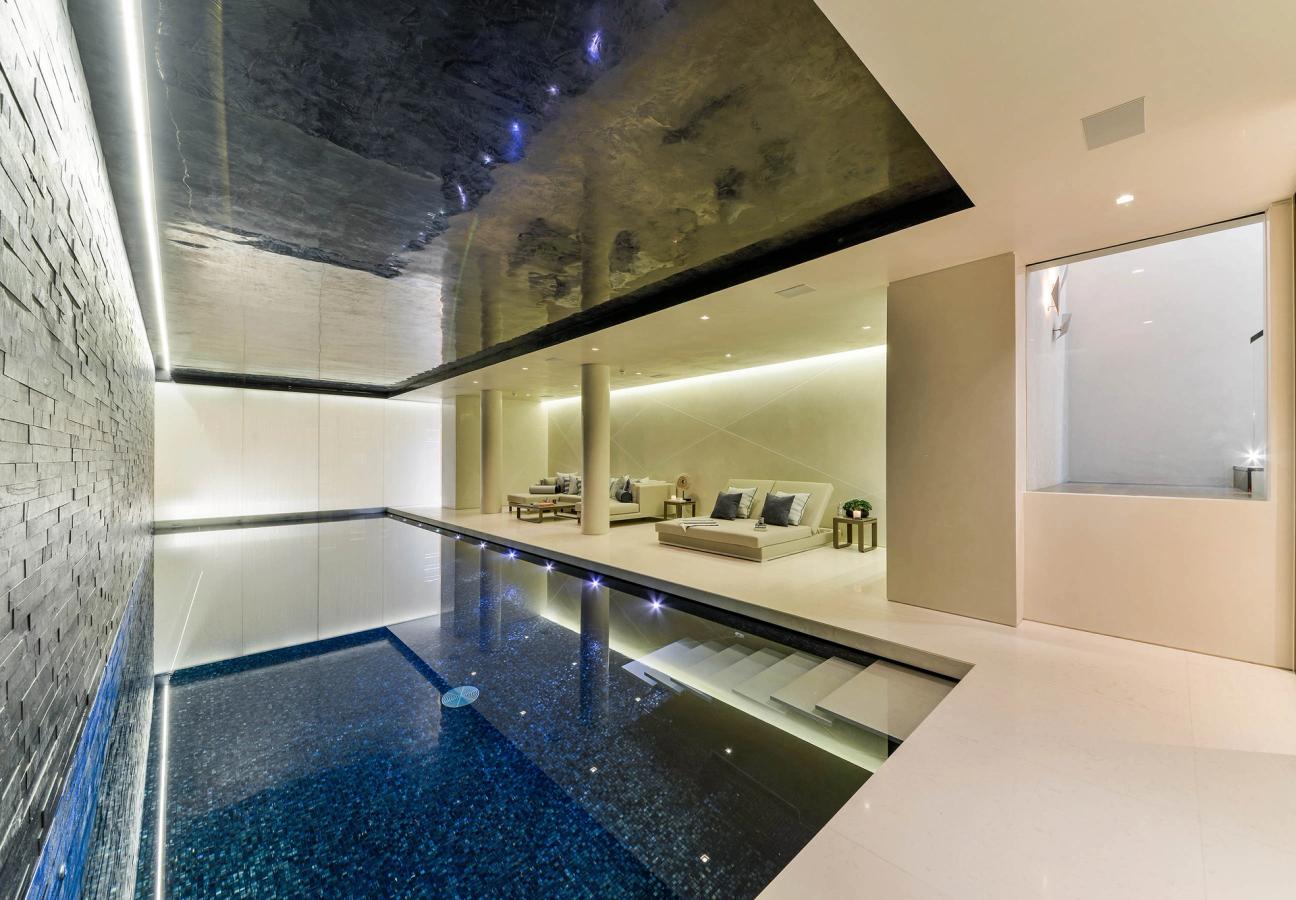 The pièce de résistance has to be the majestic, under-lit, ten metre swimming pool with doors opening out onto the back-garden. Weighing in at the very exclusive price of £36,000,000.