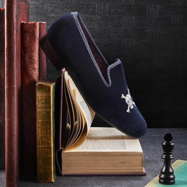 To go for something incredibly striking, the Skull & Crossbones navy velvet house slipper is the shoe for you. With embroidery design made from soft velvet, satin quilted linings and hard leather soles, the real talking point is the skull motif – more stylised than morbid. But, if the look’s not for you, there are more options available – and even the option to design your own motif, be it your own image or family crest.