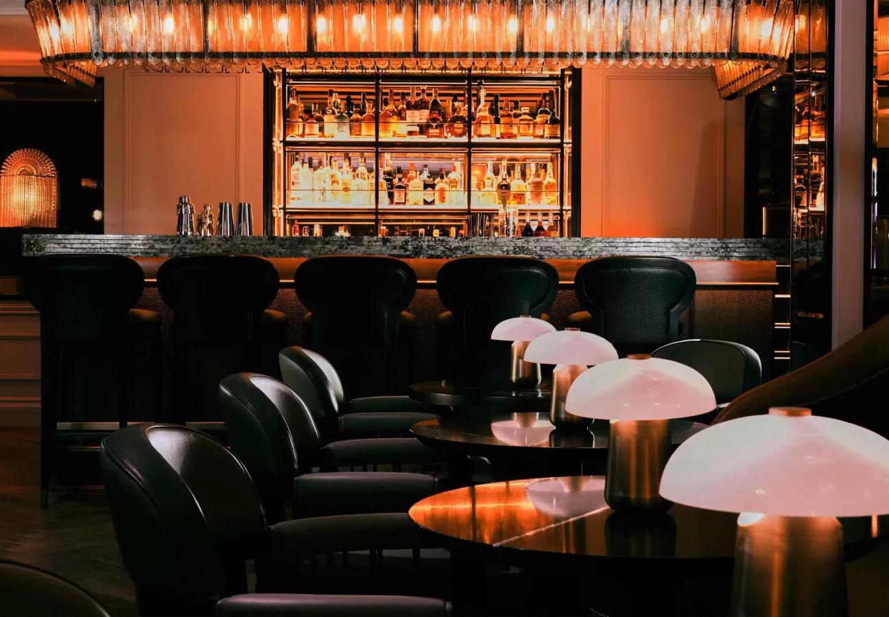 While standing at reception, through the gold and the glass, you can also glimpse The Dandy Bar. The jewel in the crystal crown of the hotel (which, due to the pandemic, had a delayed opening), the ground floor restaurant and cocktail bar thrums with the energy of a high-society Victorian novel.