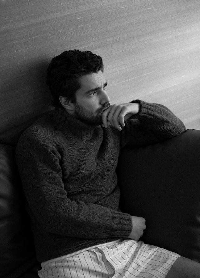 Initially, this seems like an odd observation from Frankel, as he is also a budding director. But you must only watch the two music videos he’s already directed (one for Memory of Speke, a band made up of his childhood friends, and another for New York-based jazz musician Peter Zummo) to see how deftly he pairs raw, unstructured abandon with a meticulous eye for colour, lighting and symmetry. Frankel’s brother, Max, is a producer, and the pair recently formed MarcelMonique Pictures, a production company named after their grandparents. “It just puts our claws out a little further, you know?” says the actor. “It makes things slightly more accessible — we want to be involved with really great filmmakers.”