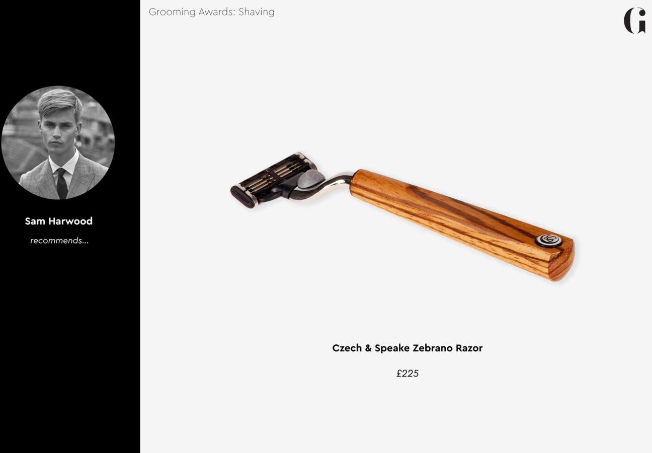 Sam Harwood’s winner in the shaving category was a razor. But not just any razor. With an intricate grain and quality construction, Czech & Speake’s Zebrano Razor is one of the most attractive available to any discerning shaver. Here’s why Harwood liked it: