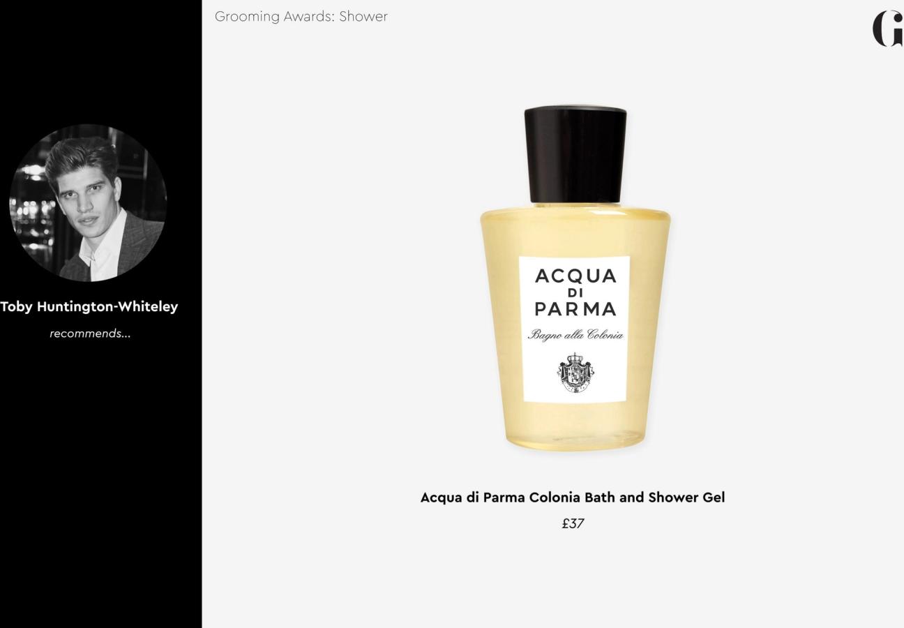 More Acqua di Parma. Model and personal trainer Toby Huntington-Whiteley was rather taken by the brand’s Bath and Shower Gel. Enriched with natural ingredients, here’s why he crowned it as his winner: