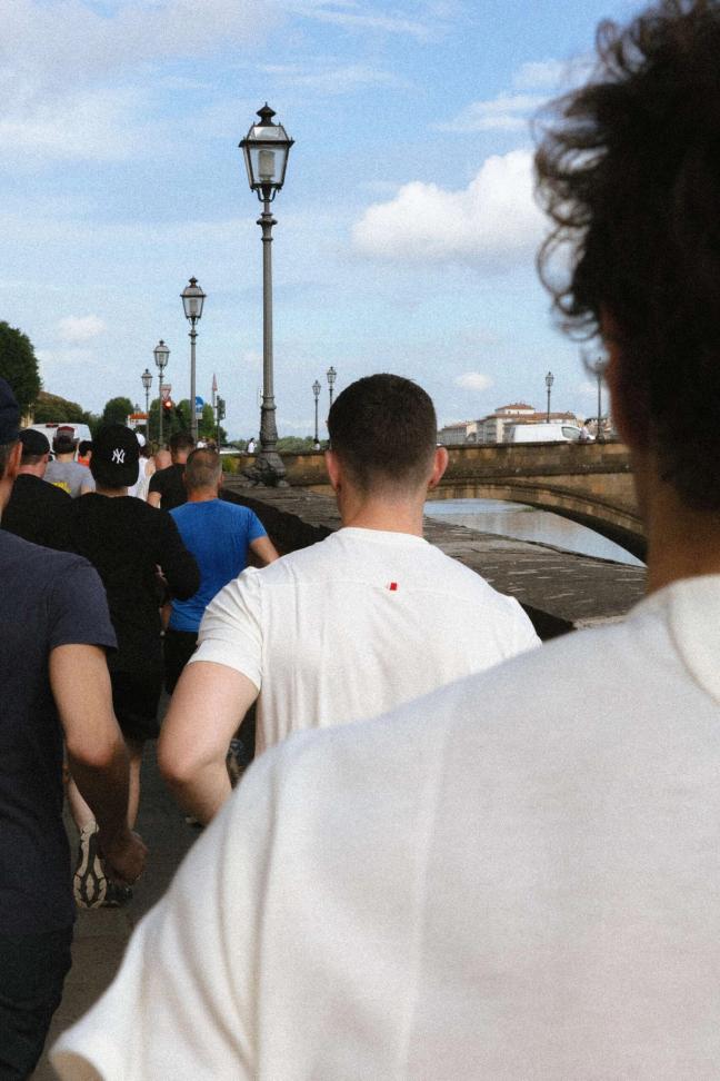 Taking in a striking route through the city, the 5km run, which welcomed friends of both companies and key figures in the menswear scene, began at the historic Circolo del Tennis Firenze 1898 – one of Italy’s oldest and most iconic sports clubs, and instantly recognisable from its string of rust-hued courts – and trailed along the banks of the Arno river, before concluding back at the starting venue.