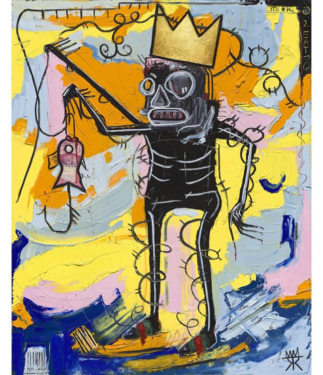 Crowns crop up in several of Muir’s more famous pieces, and these are an homage to the late contemporary artist Jean-Michel Basquiat (Muir even got a Basquiat-style crown tattooed on his right hand). “He was an underdog who had a tough time before he found art,” says Muir, “and I see a lot of myself in him”.