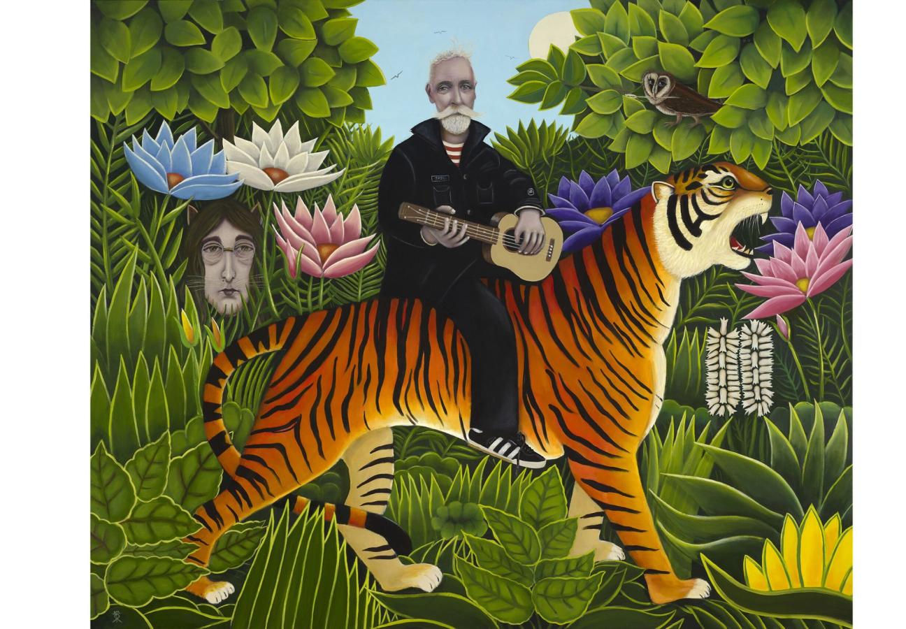 It’s another trademark of Muir’s works; hidden motifs and messages that may only resonate with a chosen few — or even just with the artist himself. And, whether it’s Grace Jones or John Lennon, one of Muir’s more manifest trademarks is a nod to musicians he appreciates or admires.