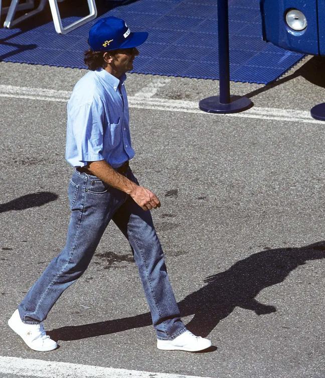 Perhaps the most ‘nineties’ look on our list, Senna’s fondness for blue jeans and white trainers informed his entire off-duty wardrobe. Most commonly paired with one of his striped or blue shirts, the racing driver would also pull on white socks to complete the look. Thankfully, worn with conviction, it’s a simple enough style to work whatever the decade.