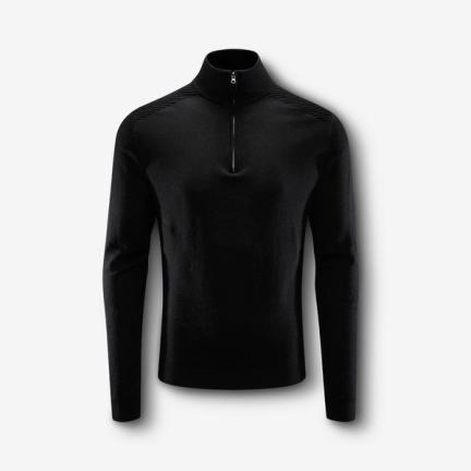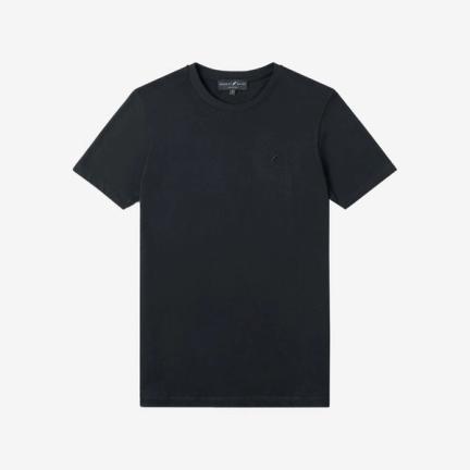 The key? Simplicity. Instead of a shirt, find a stripped-back black T-shirt such as this supima cotton style from Benedict Raven. Instead of trousers, opt for shorts — Gusari do a handsome pair. And, when the cold weather does roll in, find some natty knitwear in this deep, dark shade; Shackleton has you covered here.