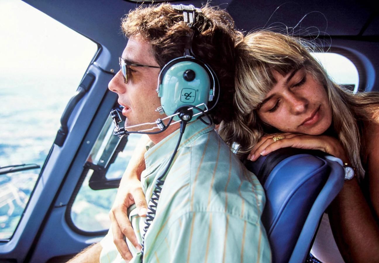 Whether worn for fashion or function, Senna’s sunglasses were always the most elegant frames in Formula One. He could be wearing them trackside, he could be on holiday with his family or — as in the 1994 photograph above — he could be at the controls of his helicopter in his home city of São Paulo. But they’d, more often than not, always share a pattern; tortoiseshell.