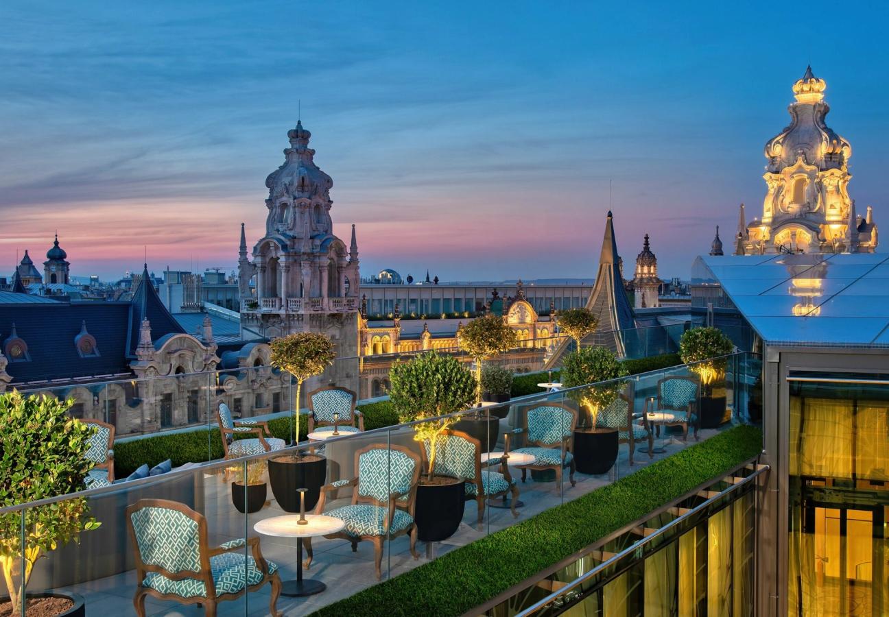 But smaller, more subtle nods to the past have also been preserved. The metalwork throughout the hotel — from the grand central staircase to the cages of the lifts — is detailed with motifs and depictions of the natural world, a request of Maria Klotild to ‘bring the outside in’. And these exquisite elevators hold but more history; they were the first in any Budapest building, and the hotel today even houses ‘hidden’ elevators for guests who wish to ascend to that ravishing rooftop bar, The Duchess.