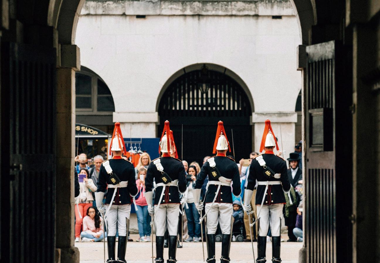 One of these is the cavalry’s daily job, the King’s Life Guard, for which 12 men and their horses move from barracks to Horse Guards Parade, via the Mall, to perform their protectorate role outside what was once the official entrance to Buckingham Palace.