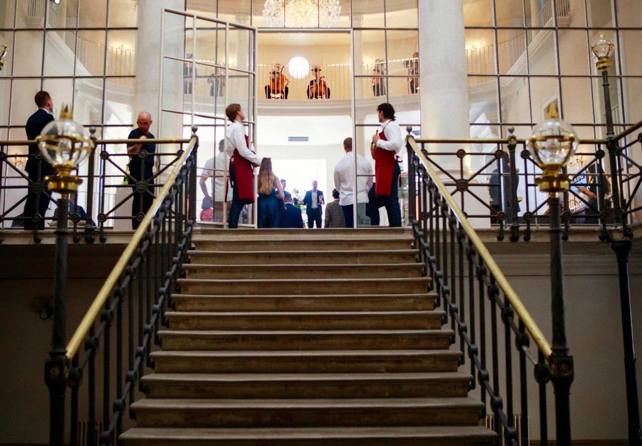 The evening began with a Champagne reception. And music, the central, unifying theme for the event was in full sophisticated swing before even the first sip — thanks to a masterful string ensemble on the atrium’s mezzanine level. But, before long, guests were ushered into a different room in Old Sessions House; one lined with chairs and sofas. We were given silk blindfolds and instructed to surrender wholly to this latest Krug encounter.