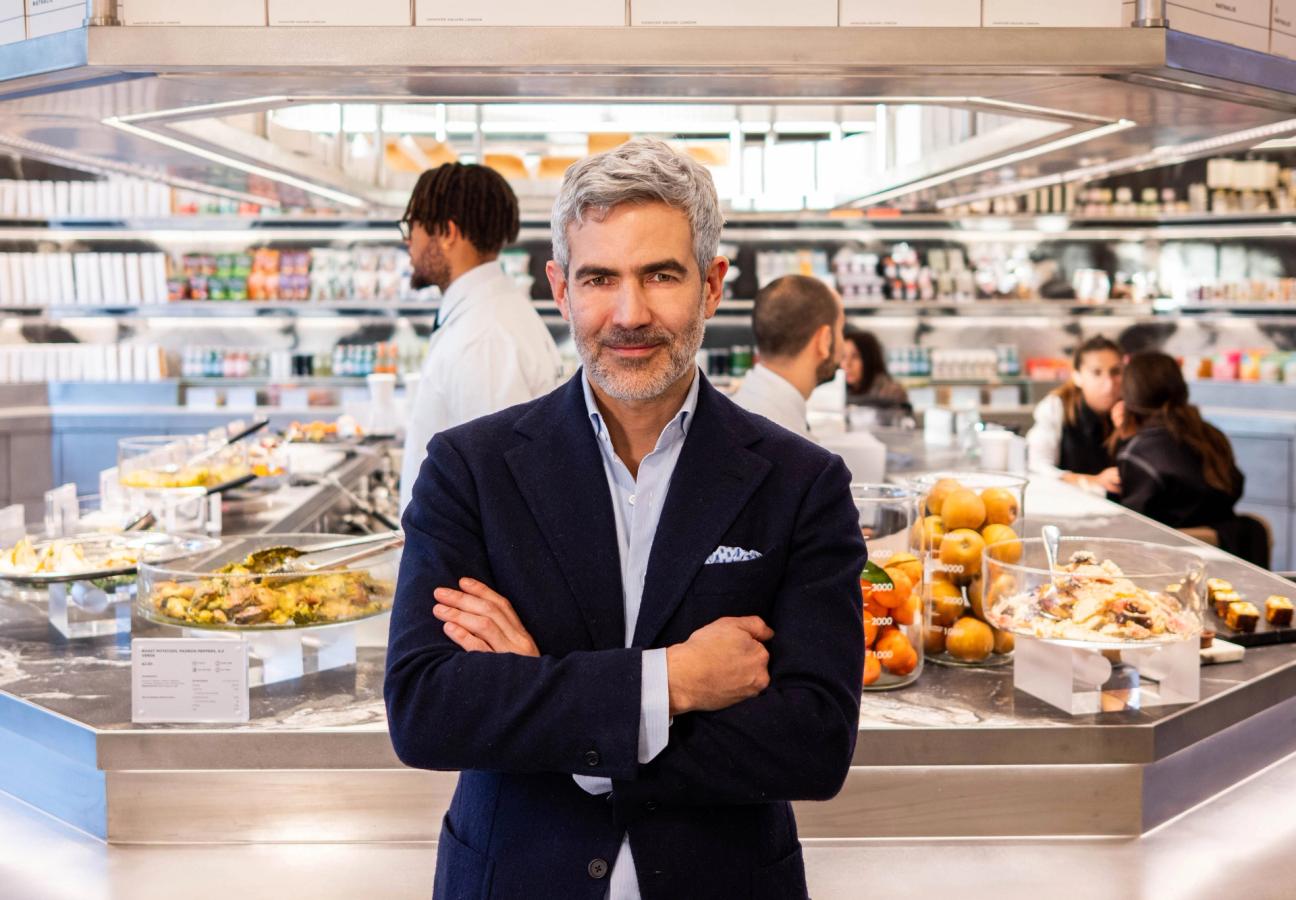 The real pros, however, settle in for the afternoon, elbows engaged, at the octagonal bar. Juan himself can often be found to the centre-right of the brushed-steel counter. It’s a perfect vantage point over the food, towards the wide double doors, and out into the to-and-fro of central London in spring (you won’t miss him, with that hair or those suits).