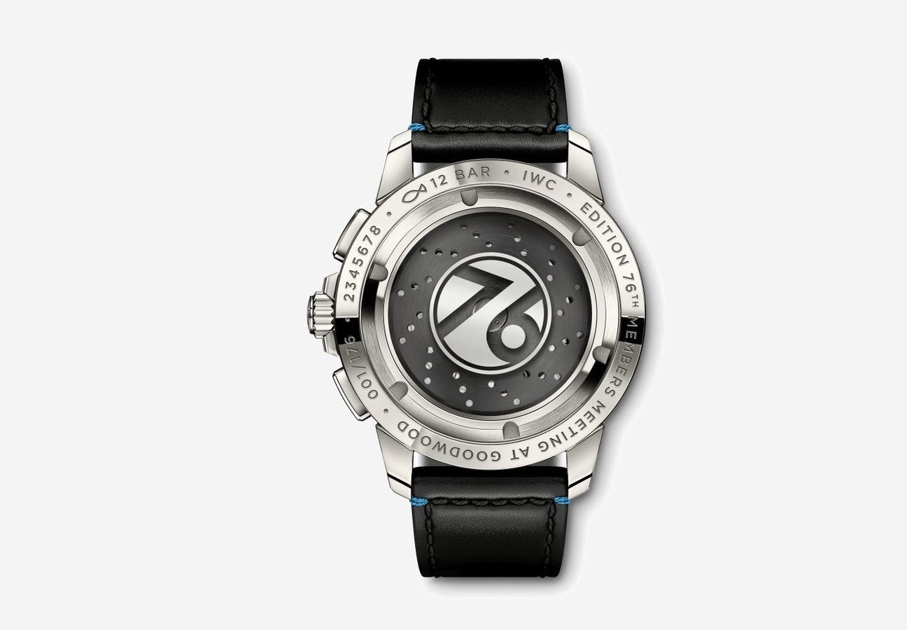In a nice touch, IWC have limited the run to 176, to commemorate the number of the meeting, and the imprint “76” commemorates too the 76th edition of the Goodwood Members’ Meeting. The black strap with blue seams has the flavour of an automobile’s interior, and this is a touch of colour nicely mirrored in the blue chronograph hands.