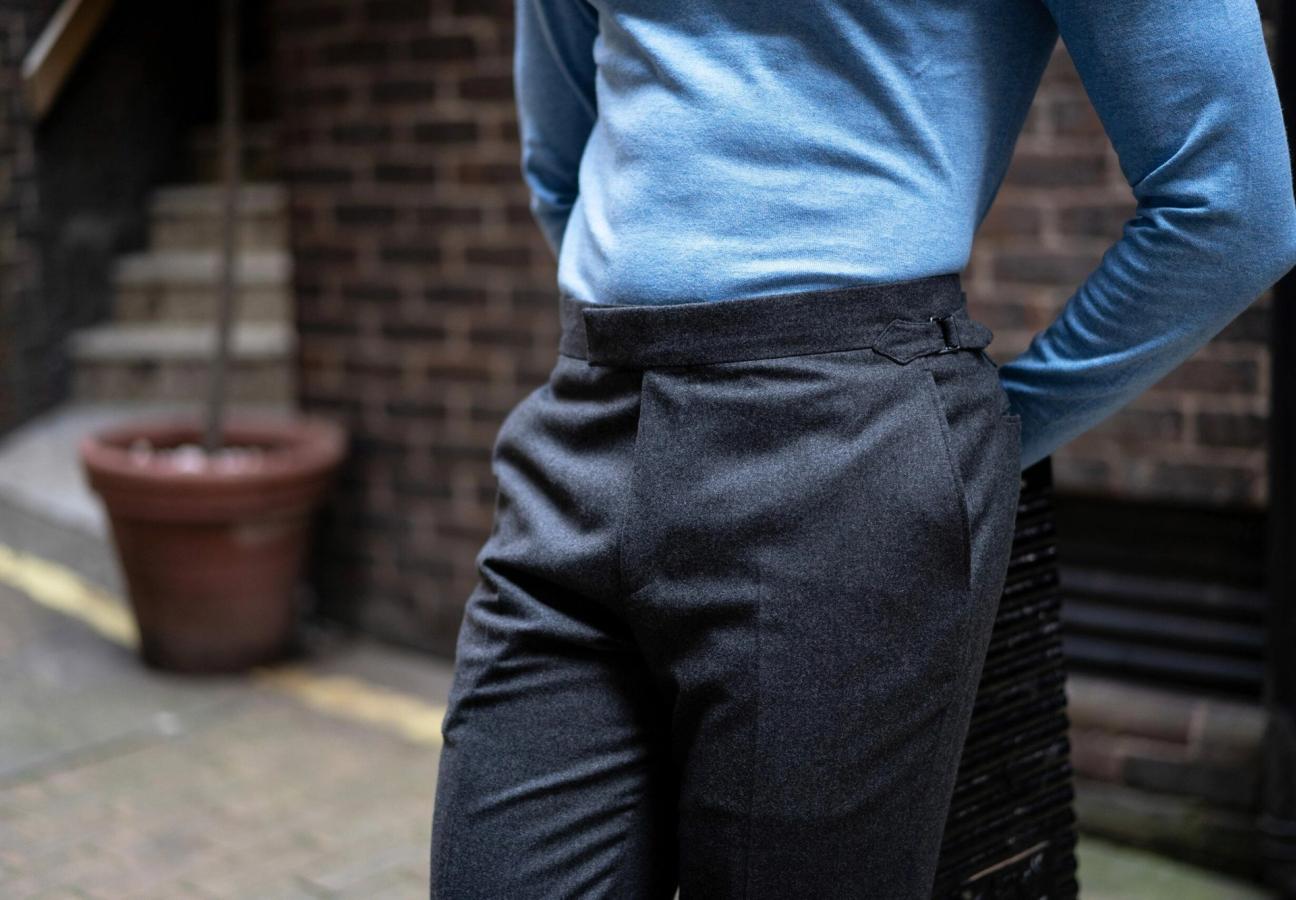 Each pair is painstakingly cut in Puglia, where Italian craftsmen work to English patterns and size the trousers in thoroughly imperial inches. The brand predominately uses cloths from the fine mills of Biella in Northern Italy — but also from Yorkshire. And, despite several styles making up the Kit Blake range, all of the trousers share similar traits; higher waists, vintage styling and (often) deep pleats. Fabrics from wool flannel to linen, cotton to tropical wool are available and, with autumn around the crisp-leafed corner, we’ve chosen three of our favourite styles for you to consider…