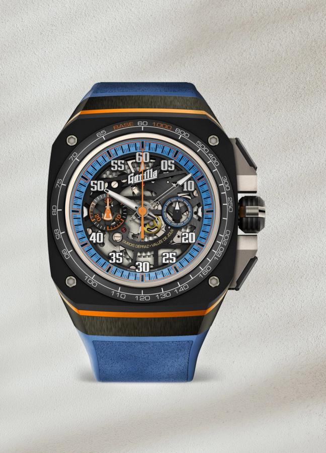 We say: Have you ever thought that watches have the power to transcend their status as inanimate objects, and become sentient beings? Well, Gorilla (and independent Vallée de Joux manufacturer Dubois Dépraz) is one step ahead of you, because that’s the idea behind this chronograph: that it’s alive and kicking (or should that be ticking?), poised and ready to ‘strike’. The open-worked dial is designed to reflect the flamboyancy of motorsport (through, for example, the blue and orange colour palette); and the time measurement readability is second to none.