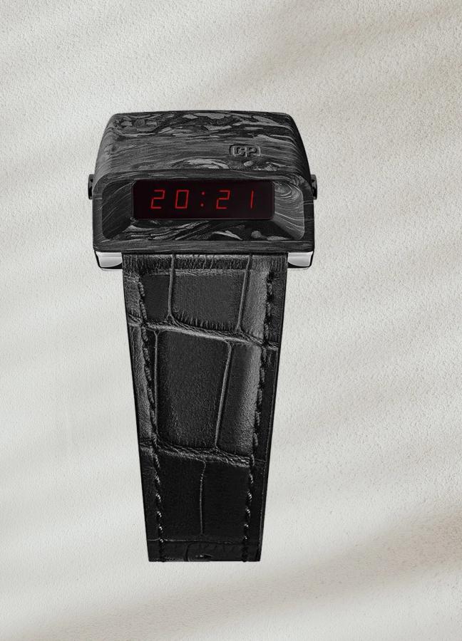 We say: We feel somewhat vindicated — because we’ve said time and again, over the past few months, that seventies style (and the incumbent retro aesthetic) is enjoying a renaissance. This watch is living proof: Girard-Perregaux have put their stamp on a 1976 icon, in a partnership with Bamford Watch Department. With a caseback and push buttons forged from Grade 5 titanium and the entire model appearing in state-of-the-art forged carbon — not to mention the Only Watch engraving, in a salute to the bi-yearly auction — this is a notable event in horology history; a uniquely modern take on a uniquely famous watch.