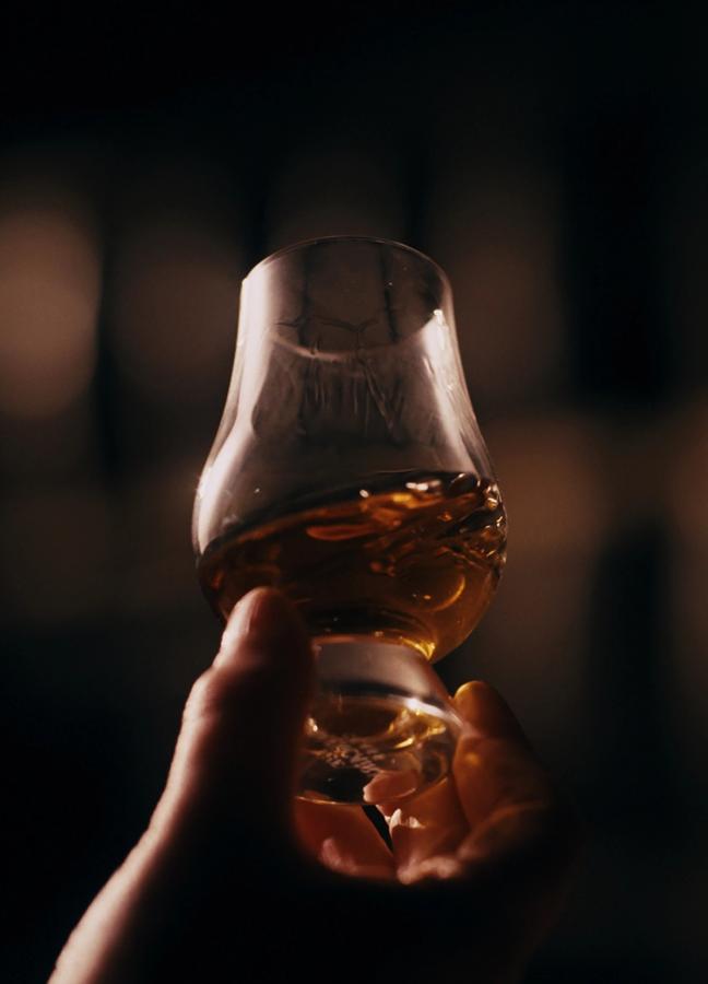 In the new film’s quieter sequences, we’re invited to witness this ritual of curation. Clark moves through shadowy barrel rooms, seeking out casks and sampling whiskies. A ‘whiskey thief’ — the long tool used to extract small measures from barrels — helps narrow the search. For this is not acquisition; it is selection. Not volume, but vision. Among hundreds — even thousands — of barrels, there is often only one that matters.