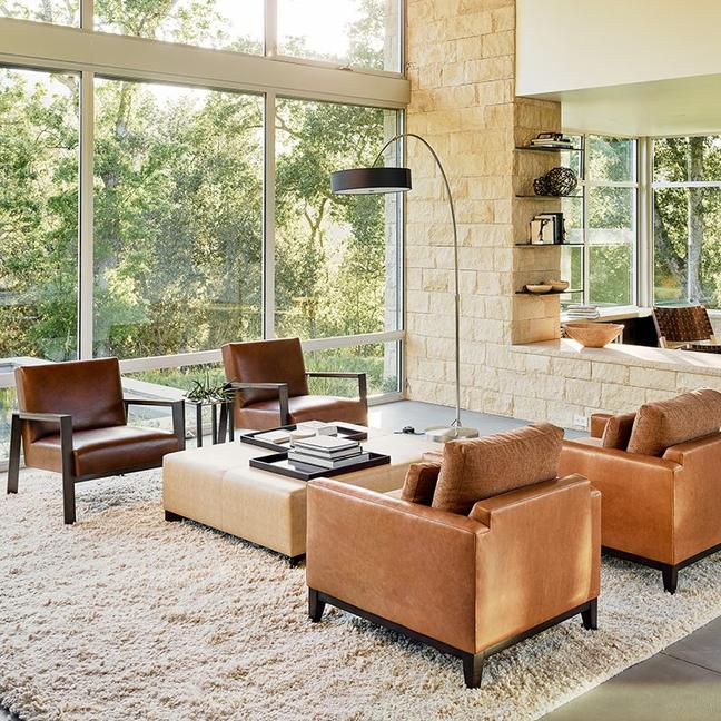 And this, teamed with an interior palette of cedar-clad ceilings, oil-rubbed wood and exposed concrete floors, comes together to present a home fit for a modern cowboy: Refined, yet rugged.
