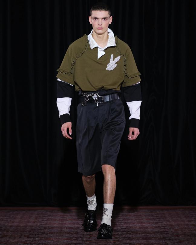 For Autumn/Winter 2025 the brand staged a show in King's Cross, and presented a collection that riffed on the idea of the traditional knight, as a nod to "a modern parade of chivalry & brotherhood". According to the brand's show notes, it was an exploration of "of the fallen rider, a discordant hybrid. Post-race, victorious in defeat, renewed." The clothes, as a result, were knightly in shape and silhouette, but anything but the typical metal hardware you'd expect from the English gentry.