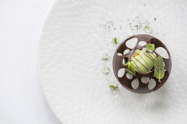 “Chocolate” – a chocolate sphere filled with yuzu cubes, sesame seeds and a quenelle of chocolate ice cream. The ideal way to finish off a night full of gluttony.