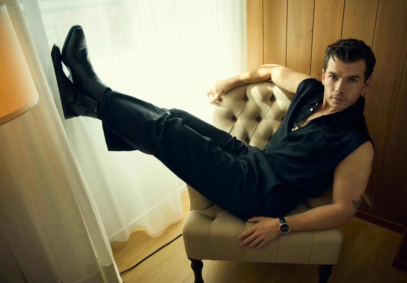 The look also features a medallion-like necklace that falls on his shirtless chest. “I’ve never done anything like this, it’s quite bold and I usually go for more minimal jewellery. Pushing my sense of style depends on the event and whether I think it’s appropriate or not.” On his wrist Newton is wearing a IWC Portugieser Automatic 42, featuring a 42mm 18 carat 5N gold case paired with a black dial.