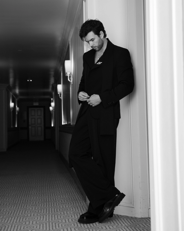 Working with his stylist Holly White (who also dresses Joe Locke and Corey Mylchreest) he's fine-tuned his looks to reflect what he actually likes wearing. "I admire the 1950s style that you'd have seen on James Dean and Paul Newman," Newton says, ahead of an exclusive photoshoot for Gentleman's Journal in his hotel. "All that Old Hollywood way of dressing. Elvis Presley has always been a big one for me, particularly for the high- waisted trousers that he'd always wear. I was actually trying to find a reference image of Elvis wearing something similar to what I'm wearing to the SAG Awards. It feels very him."
