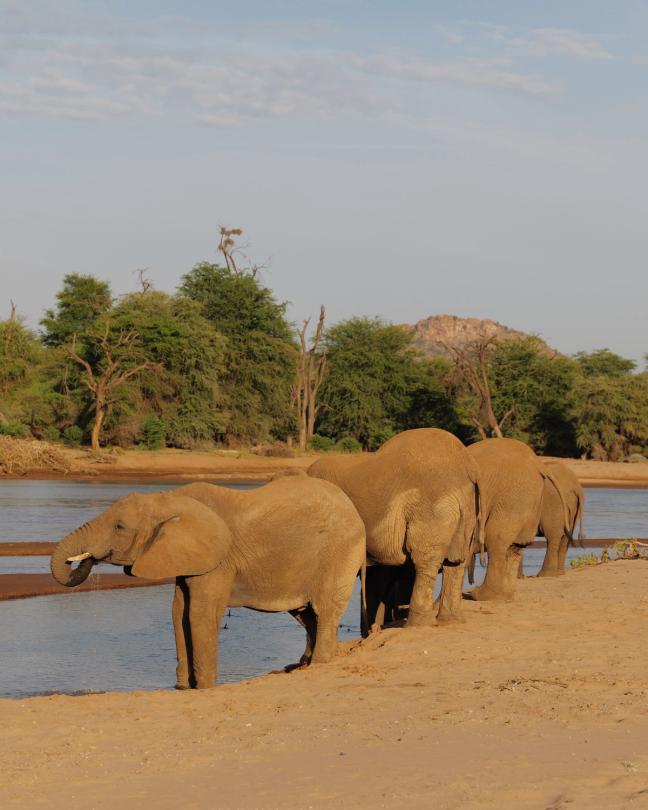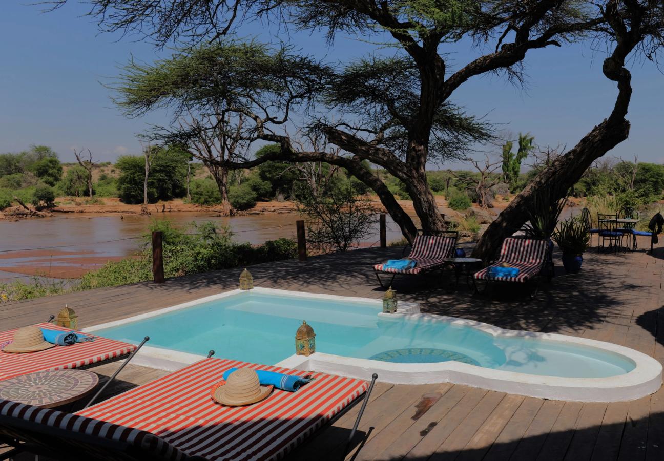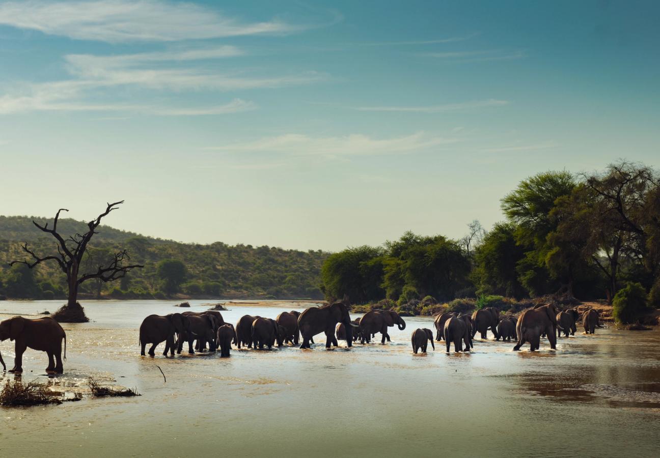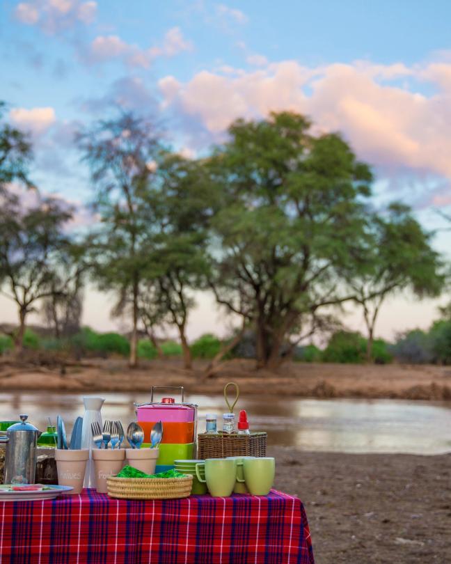 Imagine being on a sandy riverbank, as the world around comes to life. Armed with freshly brewed coffee, the early dawn sun streaming over distant mountain tops, casting a warm, golden light across a dramatic landscape. The sound of birdsong ringing out under a pale blue sky as starlings, hornbills, and weavers swoop and swirl overhead. The murky waters of the Ewaso Nyiro River ebb and flow over the rocky dry earth, marking the boundary between Isiolo County and the land of the Samburu people. Welcome to Sasaab – where luxury adventure and meaningful conservation collide in Samburu’s wild heart.