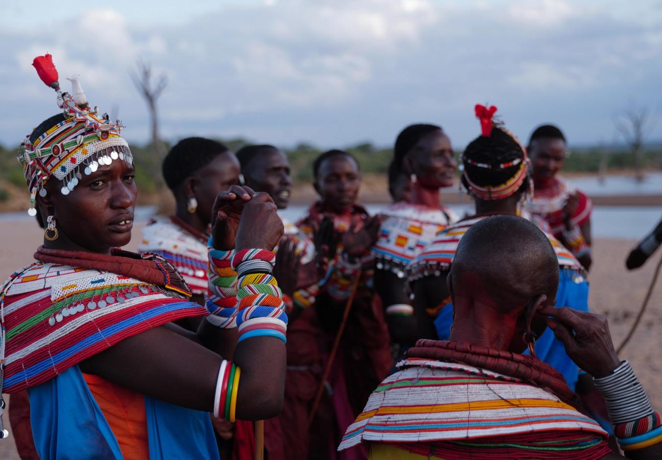 A key part of this is understanding and celebrating local heritage and tradition. Late in the afternoon, our Samburu guides, Daudi and Leresh, take us to see a ritualistic performance by women from their tribe. Adorned in intricately patterned bead necklaces and headdresses, passed down through generations and representing the unity and fertility they seek, the women chant and dance beside the river as the setting sun casts long shadows over the sandy banks. Traditionally, the women are relied upon to invoke the favour of their god Nkai to bring rain during times of drought. The ‘rain dance’, performed for several hours each day when water is scarce, demonstrates their deep spiritual connection with Nkai, each other, and the natural world, giving them the strength to endure.