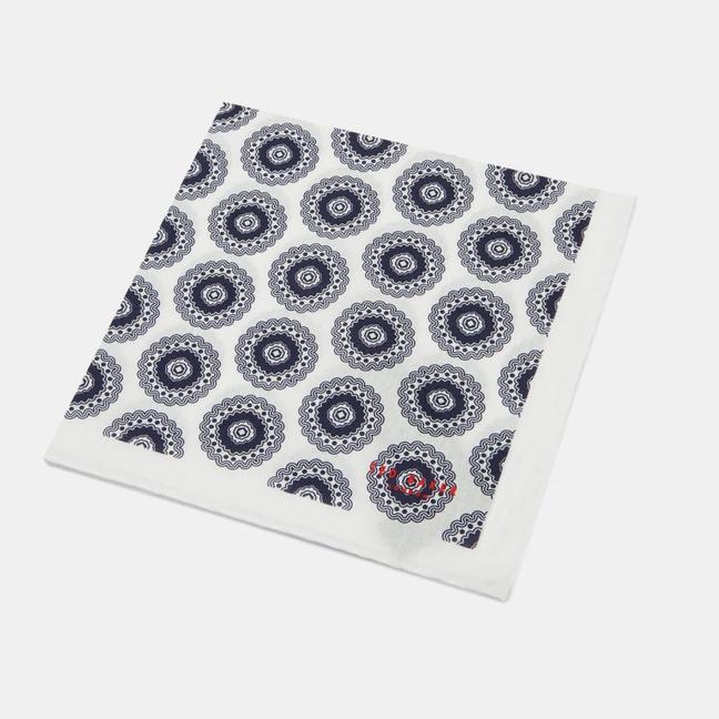 Hints of colour, and accessories that don’t cause overheating are invaluable during the summer months. A pocket square, such as this geo print example below, will bring interest to your outfit without adding another layer. And, if you don’t mind the heat, a scarf is the perfect lightweight addition – and easily taken off when the mercury rises.