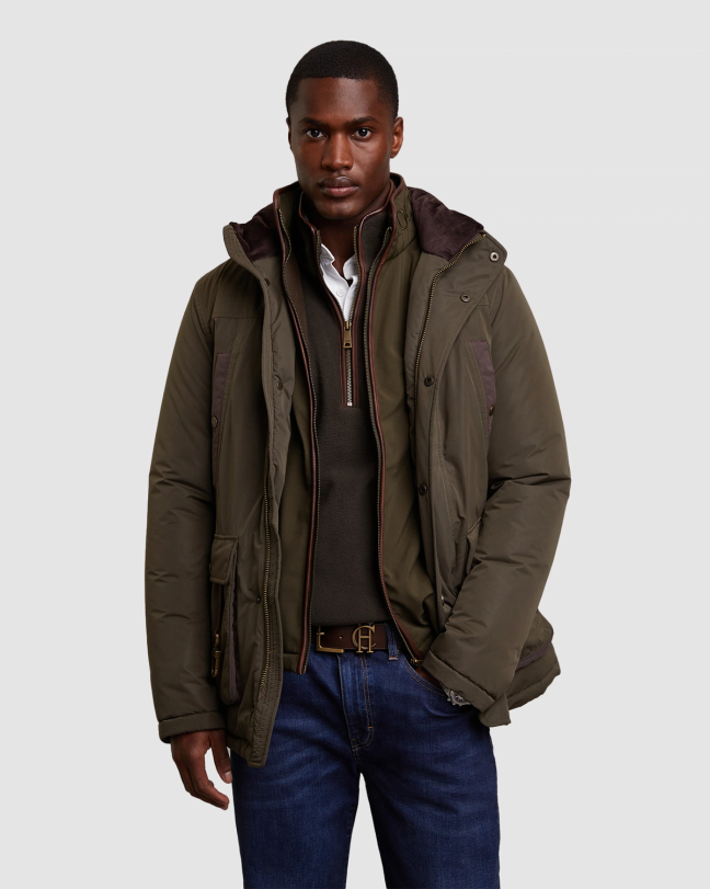 British brand Holland Cooper is offering up two items: a classic waterproof four-pocket field coat, and a pair of timeless straight black jeans, made from comfortable stretch denim with signature metal hardware. The ultimate clothing duo for your cool and casual weekend looks.