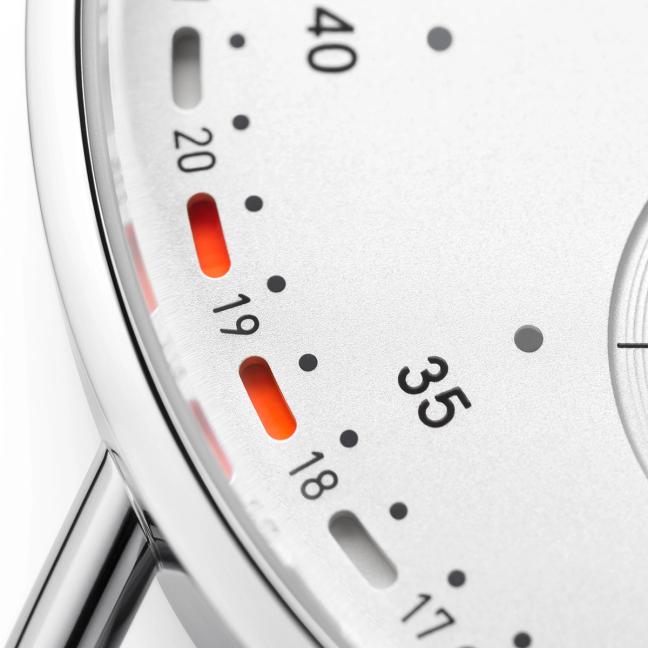 A best-selling range since its launch in 2014, there are now a dozen different Metro models, the visual identity of which was designed by Berlin-based Mark Braun. The aesthetic recalls an intricate measuring instrument: minimal, but characterised by striking wire lugs, a diamond-knurled crown and, of course, a constellation of those distinctive dot indices, a no-nonsense numeral alternative.