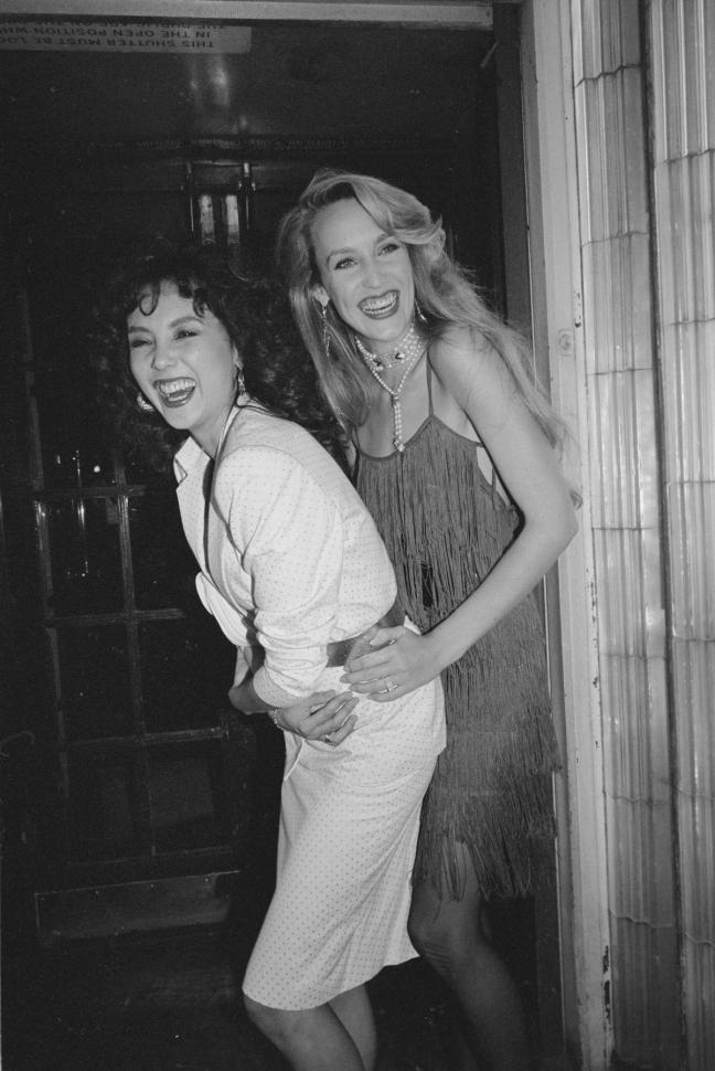 Marie Helvin and Jerry Hall at Mick Jagger’s birthday party