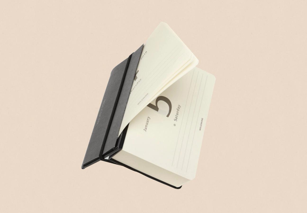 The classic black Moleskine 12-Month Daily Desk Calendar has one detachable page per day to help you keep track of time, and a pocket to store your most meaningful experiences.