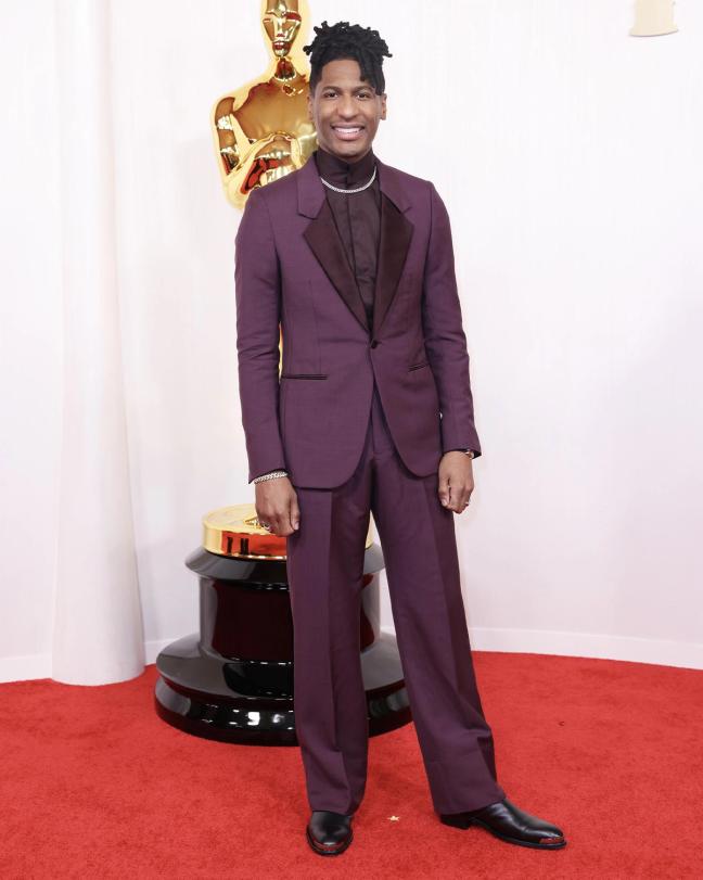 Jon Batiste, who was a Best Original Song nominee for “It Never Went Away”, rocked a full purple tuxedo from Zegna.