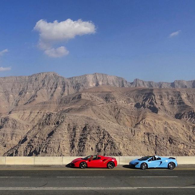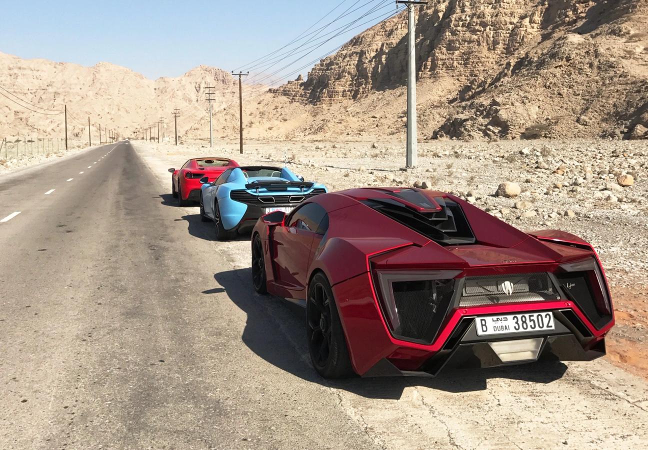 GJ: Which car did you take this trip in?, We actually took 3 cars: my friend Ollie Webb in a Ferrari 488 Spider; myself in a McLaren 650S Spider; and Benoit from W Motors in the Lykan Hypersport. The Lykan is the crazy Hypercar from Fast & Furious 7 that jumps through multiple skyscrapers in Abu Dhabi.