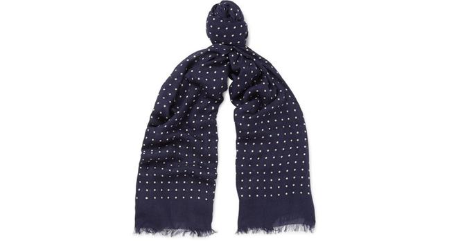 Featuring an eye-catching polka dot print, this accessory is bold yet reflects the British refinement that Drake’s is known for. The scarf is also crafted from a wonderfully soft blend of modal and cashmere, making it the perfect material to wear throughout this transitional season. Light, yet warm, pair with your favourite piece of dark tailoring for it to add a rakish charm to your suit’s look.
