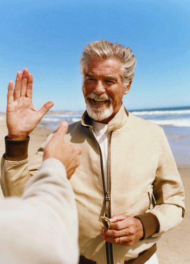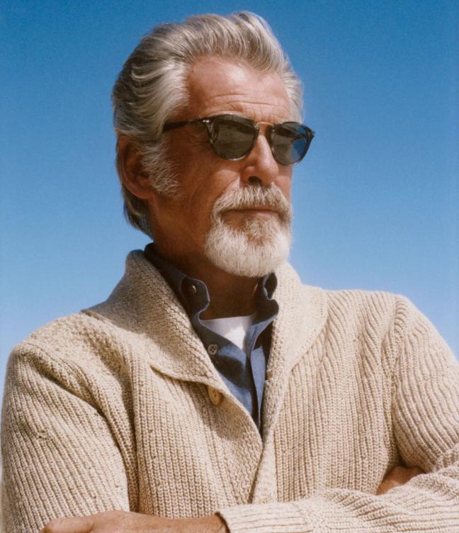 There’s a softness to Brosnan — in both voice and temperament. He’s clearly content, happy to follow his own path and be his true self — but he’d never let this freedom of spirit bring detriment or discomfort to others. Speaking to the actor, one thing is clear: we should all be more Brosnan. Because this is a happy man happily growing old. He’s happy for his hair to go grey — “I just let it go…”. And he’s happy living by his short, time-tested list of considered mottos and mantras.