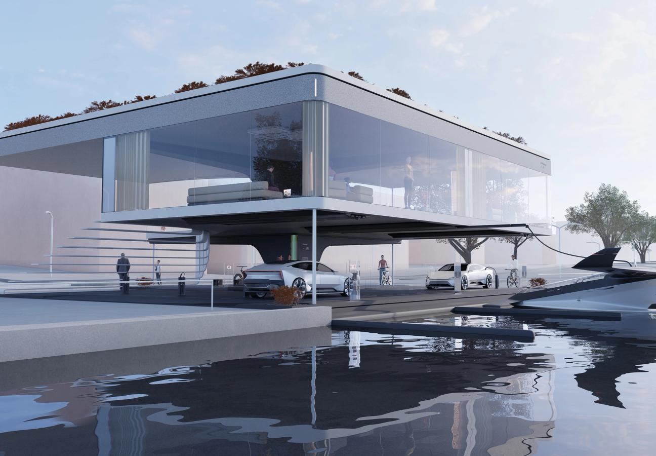 There was a brutalist-style electric yacht, with hard lines that contrasted against the soft flow of the surrounding water; an airship that looked like a cross between a flatscreen monitor and a prop from a Star Wars set; and a pod-like vehicle with a pared-down, boxy shell featuring a cylindrical intervention towards the front.