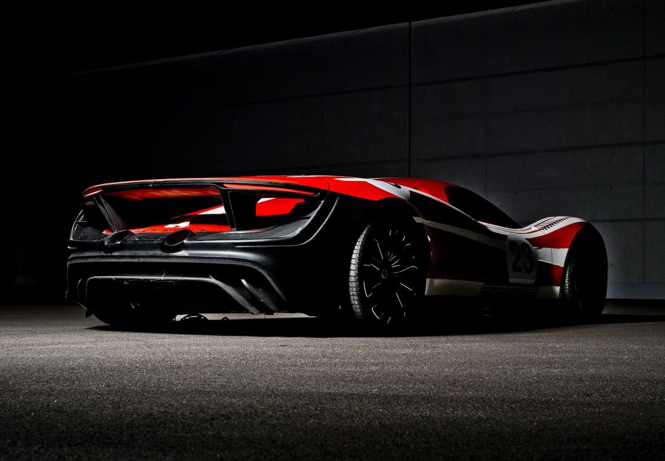Finished in the white and red livery of the Porsche Salzburg 1970 Le Mans 24 hours-winning 917, this new concept is being showcased at a special exhibition in Stuttgart’s Porsche Design Museum until September — and highlights the aerodynamic sculpting of the original.