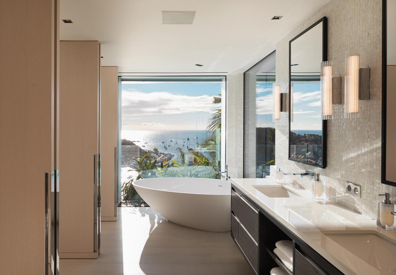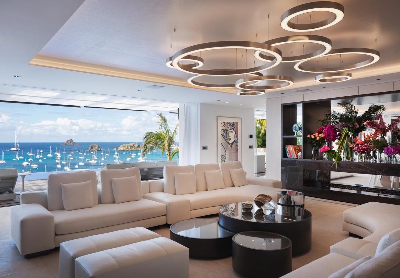 The 12,000 square-foot, four-level masterpiece offers a commanding vantage point over the yacht-filled Gustavia Harbor, with further views out to the glittering Caribbean sea, green mountains and surrounding islands. Mere minutes from the beach and walking distance to St. Barth’s upmarket shops and restaurants, it’s ideally located for luxury shopping, fine dining and sophisticated nightlife.