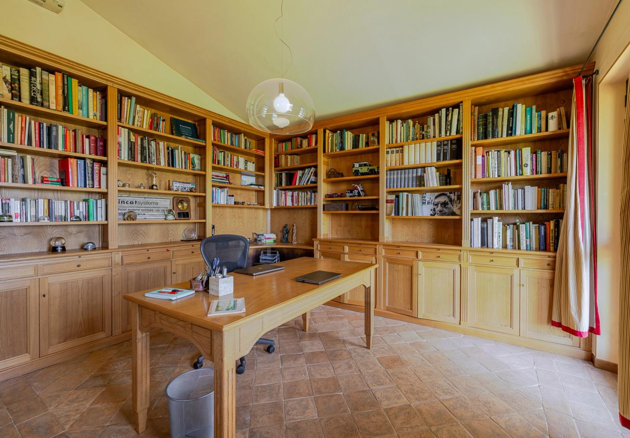 Beyond the grounds, the property comprises a charming stone farmhouse dating back to the 1600s, a second guest house, and two private swimming pools. The main farmhouse offers generous living space. The ground floor features a bright entrance hall, a kitchen with a breakfast room, and access to a covered pergola for al fresco dining, the ideal setting to revive the tradition of the long lunch. There is also a reception room with a fireplace, while exposed brick, stone floors, and wooden beams run throughout, helping to keep interiors cool during the summer months.
