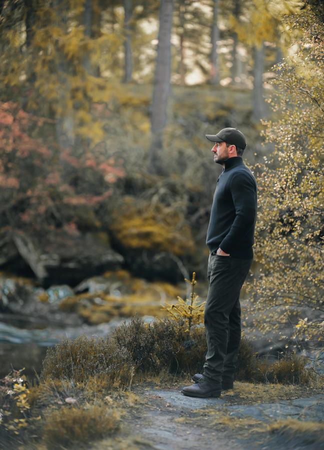 The collection’s footwear showcases the same balance of heritage and innovation. Purdey’s commando boots combine Veldtschoen welts with a collar padded in the brand’s Strathbeg tweed — deftly walking the line between classic design and durability. With such firm foundations to the expedition, Aiken was able to experience the Cairngorms without distraction. For these journeys, he says, aren’t about speed or conquest. “They’re about attention. About moving carefully through a landscape that has no need to accommodate you.”