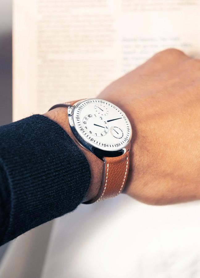 The pioneering Ressence ‘Type 1 Slim’ in white features a classic-coloured dial, leather strap and titanium case — but is a watch like no other…