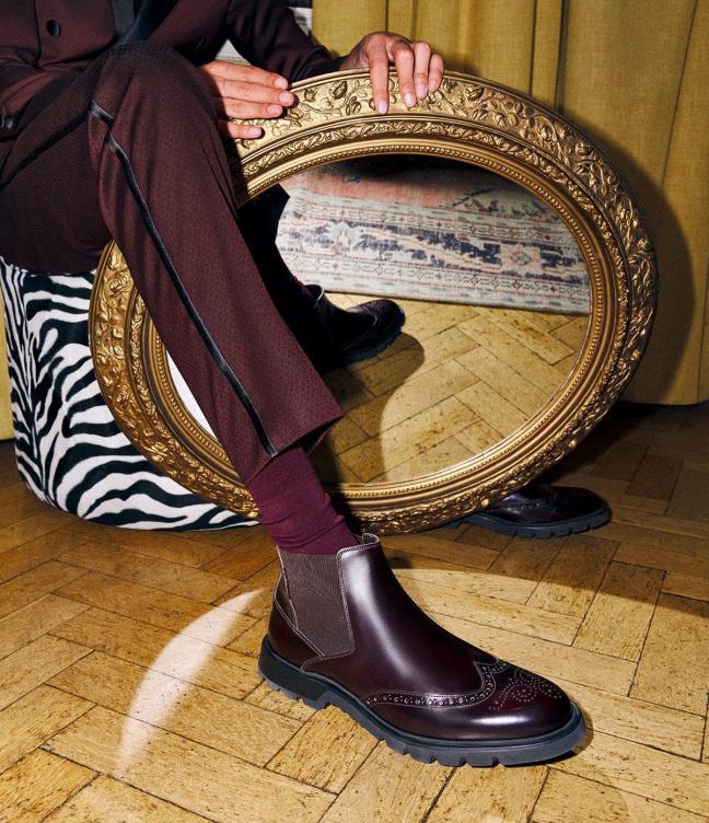 And that means finding a pair of shoes that’ll step from work to play in subtle, serviceable style — and stride as confidently around the boardroom as they will the bar. In a festive shade of burnished burgundy, these ‘Farringdon’ Chelsea boots have been zhuzhed up with brogue detailing and angular elastic inserts. The best part? Standing on lightweight, commuter-friendly soles, they’ll walk you smartly back into the office once a new year kicks off.