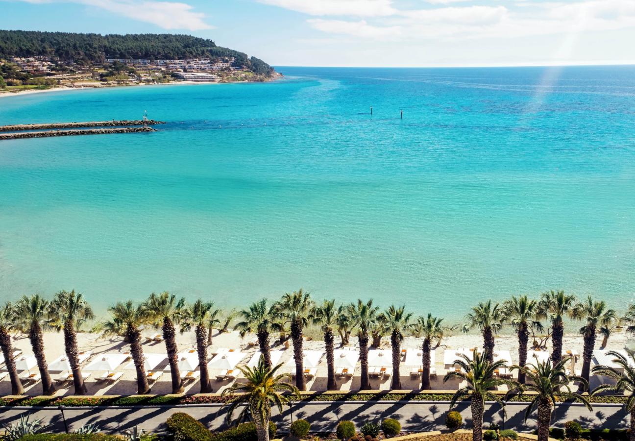Which is how we found ourselves pulling up to the Sani Resort, a 400-hectare estate in Halkidiki, Greece. The Sani story starts back in the 1960s, when founder Anastasios Andreadis discovered the bay by boat. Back then, there was no road from Thessaloniki – home to the nearest airport, which is an hour’s drive – and all that stood on the site was a ruined castle overlooking blonde beached coves and turquoise waters. Purchasing the land from a sect of monks from Mount Athos, Andreadis got to work developing the foundations of what would become an empire of family-focused hotels, restaurants and activities. By 2015, financial investors came in but the business is still run by the Andreadis family to this day.