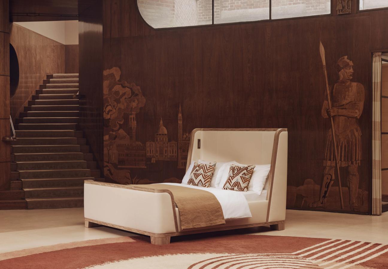The high-tone product – a new take on the classic sleigh bed, and conceived by furniture designer Michael Noah – has taken its cues from the opulent style of ocean liners from the 1930s, with its graceful, organic lines and soft, warm colourway. The refined appearance is enhanced by the use of soft Foglizzo leather and a trim in anigre timber, and saddle-stitch detailing subtly showcases the craft behind it all. Meanwhile, the frame holds a Savoir No. 4 spring base, a custom-made mattress by Winch Design, and a topper made from horse hair and wool. Integrated lights by Chelsom encourage reading, rather than scrolling, before bed, and matching bed-side tables round out the look.