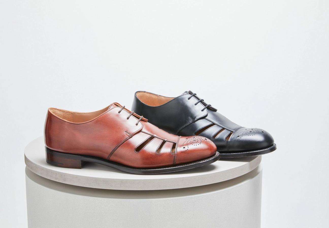 And not all Derby shoes are smart. Unlike the brogues above — elegant and embellished — Cheaney’s most rakish new release is a perfectly practical hybrid of lace-up shoe and sandal; a slotted Derby ideal for the summer months and named for one of Britain’s best, most sunny seaside resorts, the ‘Brighton’.