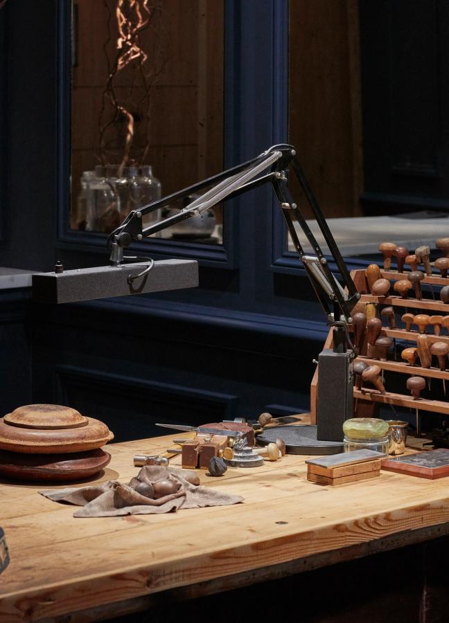 Rebus Director Emmet Smith has been engraving for years and, while he now hires some of the best engravers in London rather than slipping on the loupe himself, the craftsman-cum-businessman is still the cornerstone of the company. We headed down to his studio to sketch out designs for our own ring.